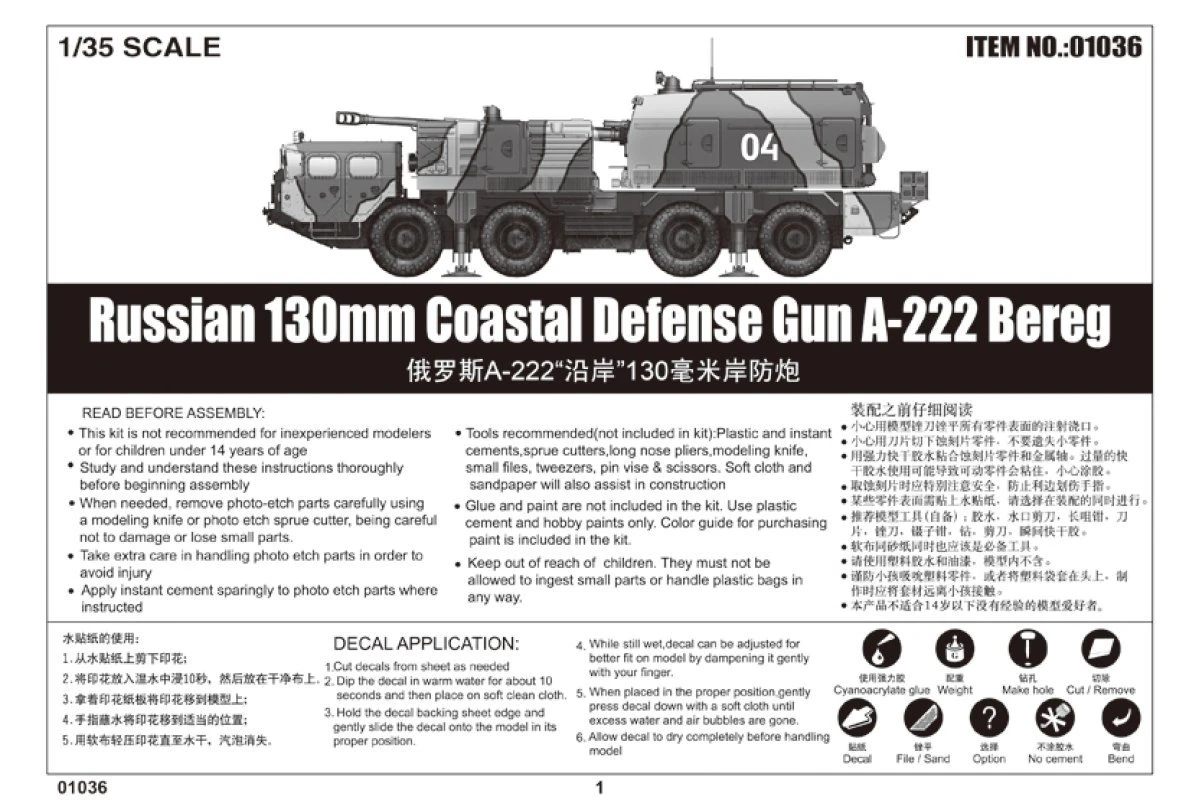 01036 | Trumpeter 1/35 Russian 130mm Coastal Defense Gun A-222 Bereg Artillery Truck Scaled Plastic Model Kit -Mini Crafters Store TRU 01036 62 1200x800 1