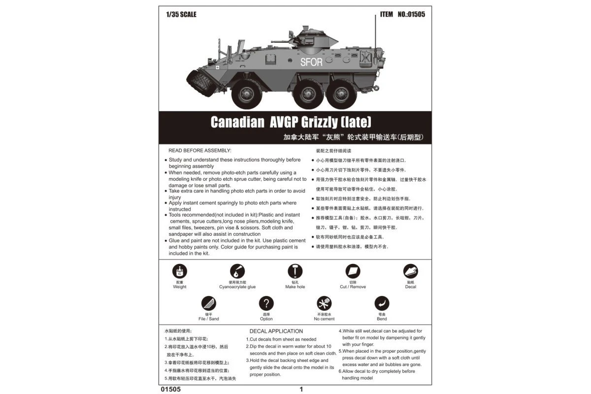 01505 | Trumpeter 1/35 Canadian Grizzly AVGP Armoured Vehical Scaled Plastic Model Kit