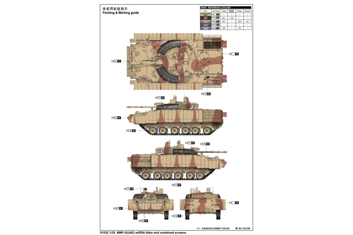 01532 | Trumpeter 1/35 United Arab Emirate BMP-3 Tank W/ ERA Titles & Screens Scaled Plastic Model Kit