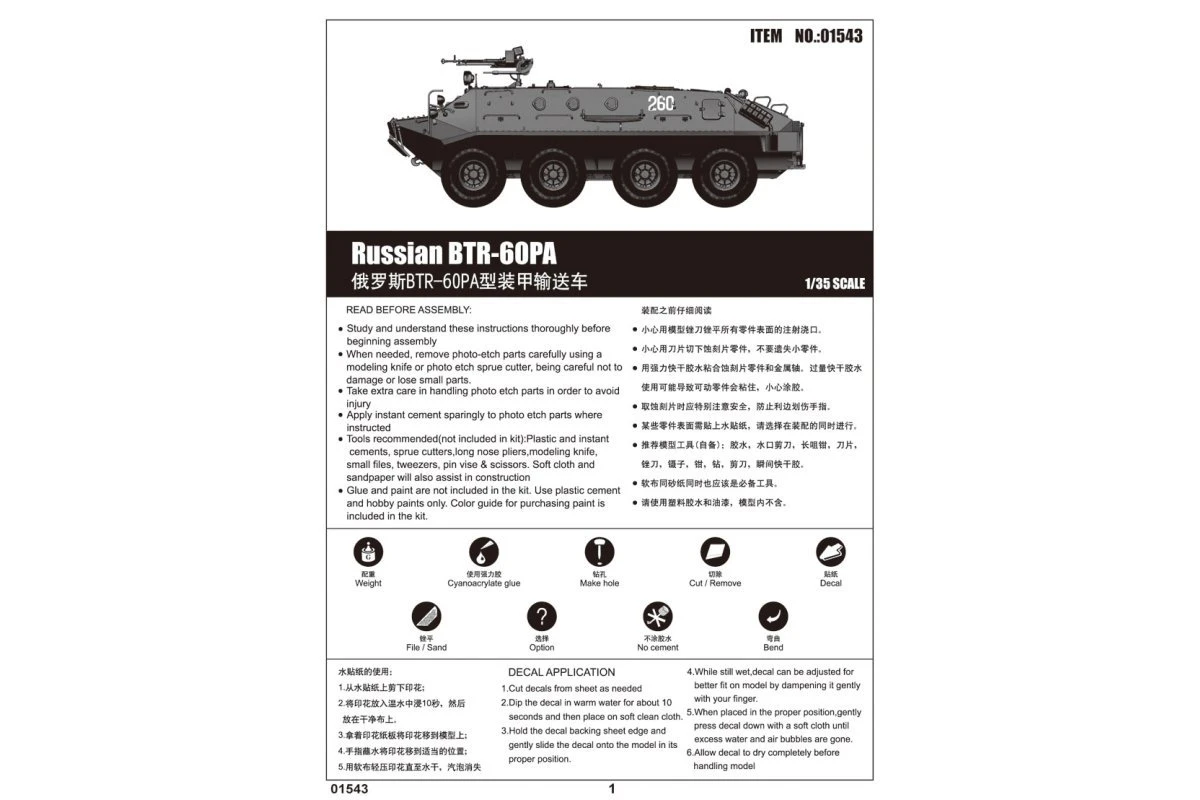01543 | Trumpeter 1/35 Russian BTR-60PA Armoured Personnel Carrier Vehicle Scaled Plastic Model Kit