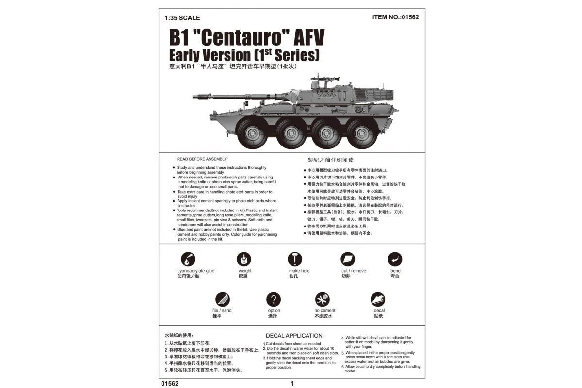 01562 | Trumpeter 1/35 B1 Centauro AFV (Early Version) Armoured Car Scaled Plastic Model Kit