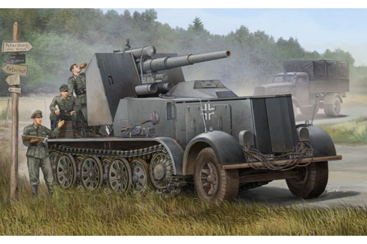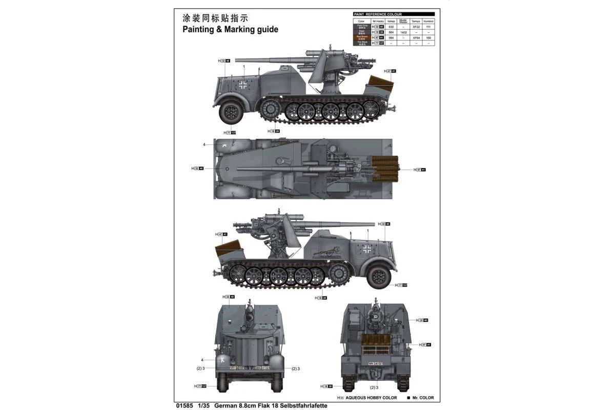 01585 | Trumpeter 1/35 German 8.8cm Flak 18 Selbstfahrlafette Half-Track Self-Propelled Gun Scaled Plastic Model Kit