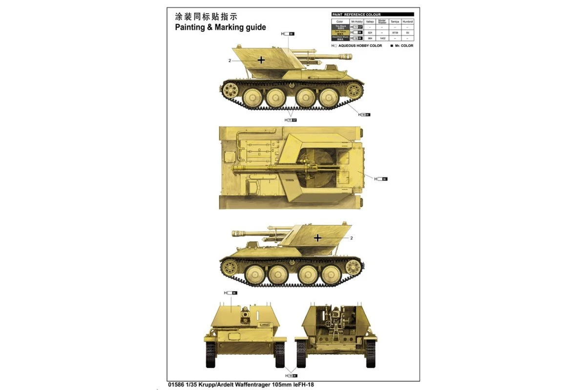 01586 | Trumpeter 1/35 Krupp/Ardelt Waffentrager 105mm LeFH-18 Self-Propelled Gun Scaled Plastic Model Kit