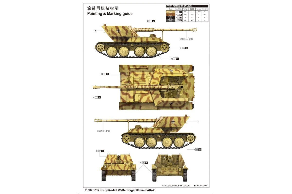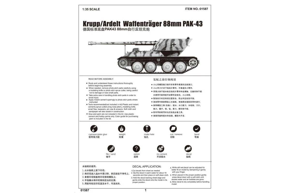 01587 | Trumpeter 1/35 German Krupp/Adrelt Waffentrager 88mm Pak-43 Self-Propelled Gun Scaled Plastic Model Kit