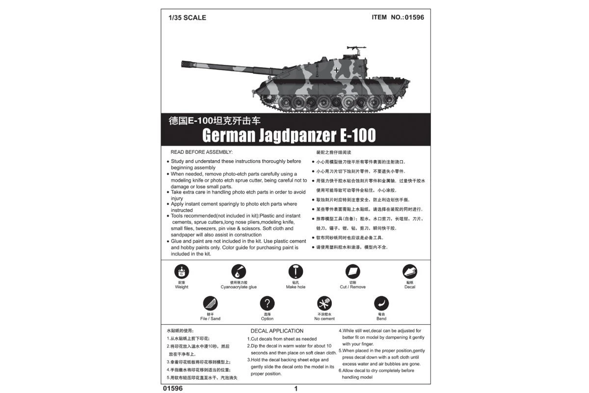 01596 | Trumpeter 1/35 German Jagdpanzer E-100 Self-Propelled Gun Scaled Plastic Model Kit