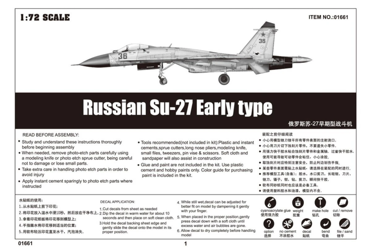 01661 | Trumpeter 1/72 Su-27 Early Type Fighter Jet Scaled Plastic Model Kit