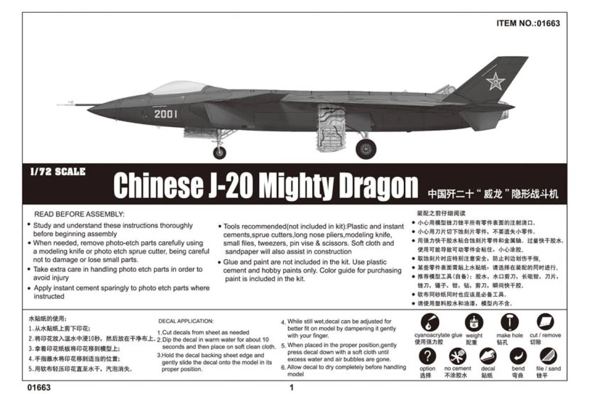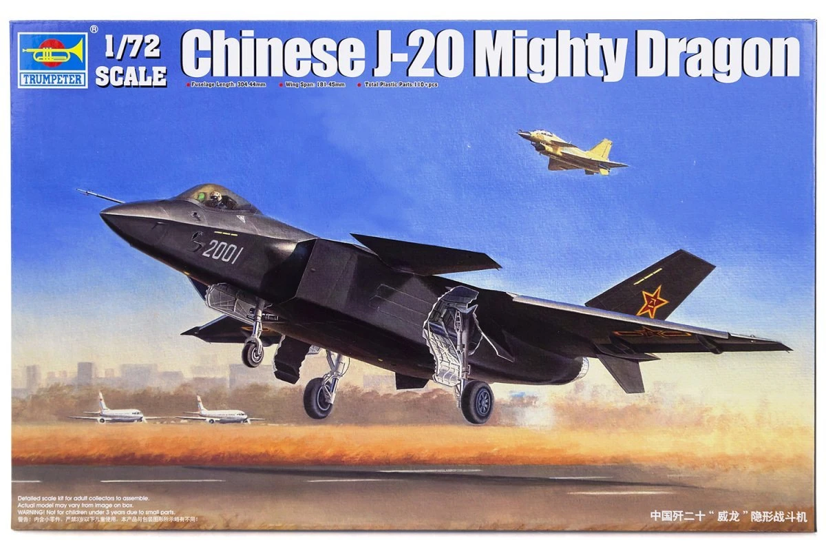 01663 | Trumpeter 1/72 Chinese J-20 Mighty Dragon Fighter Jet Scaled Plastic Model Kit