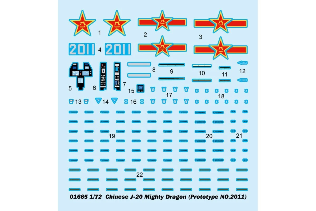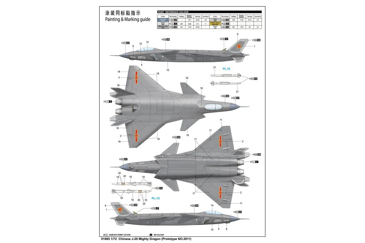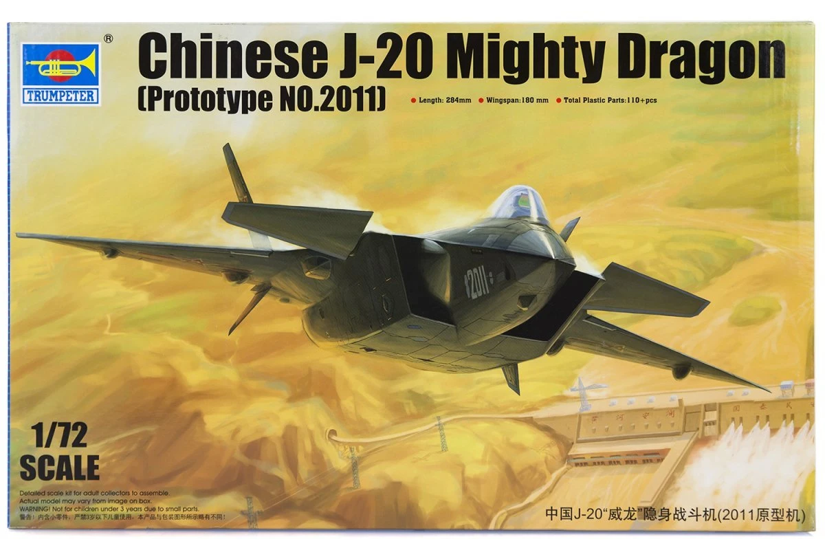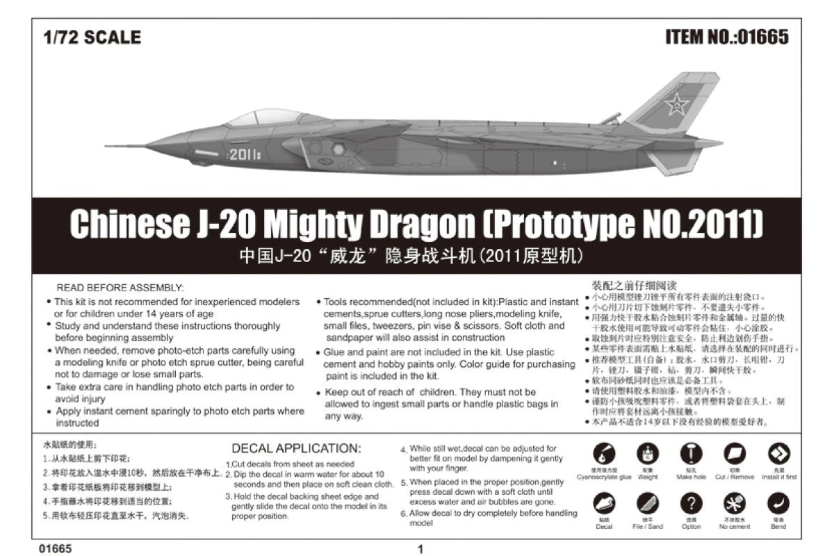 01665 | Trumpeter 1/72 Chinese J-20 Mighty Dragon (Prototype No.2011) Fighter Jet Scaled Plastic Model Kit