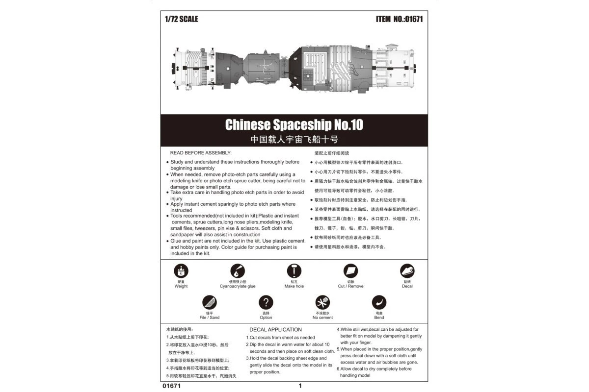01671 | Trumpeter 1/72 Chinese Spaceship #10 (Pre Painted) Scaled Plastic Model Kit