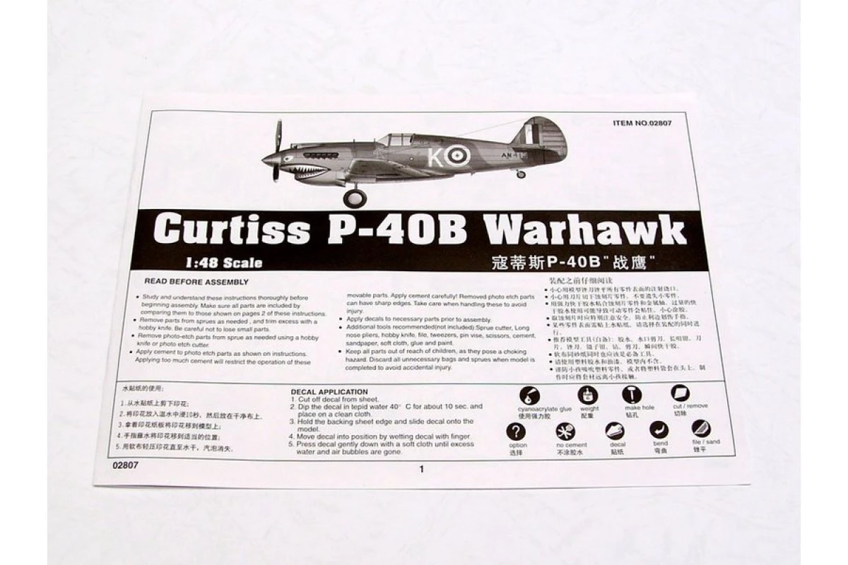 02807 | Trumpeter 1/48 P-40 Warhawk (Tomahawk II A) Fighter Scaled Plastic Model Kit