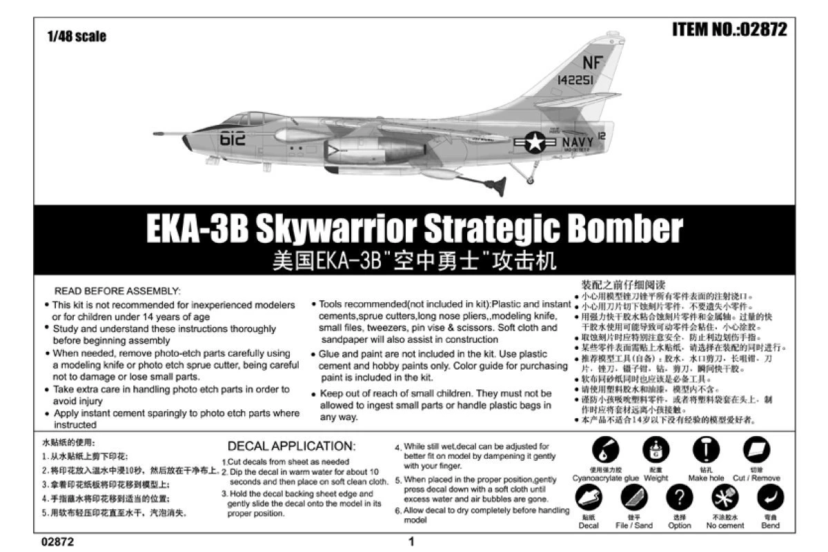 02872 | Trumpeter 1/48 EKA-3B Skywarrior Strategic Bomber Scaled Plastic Model Kit