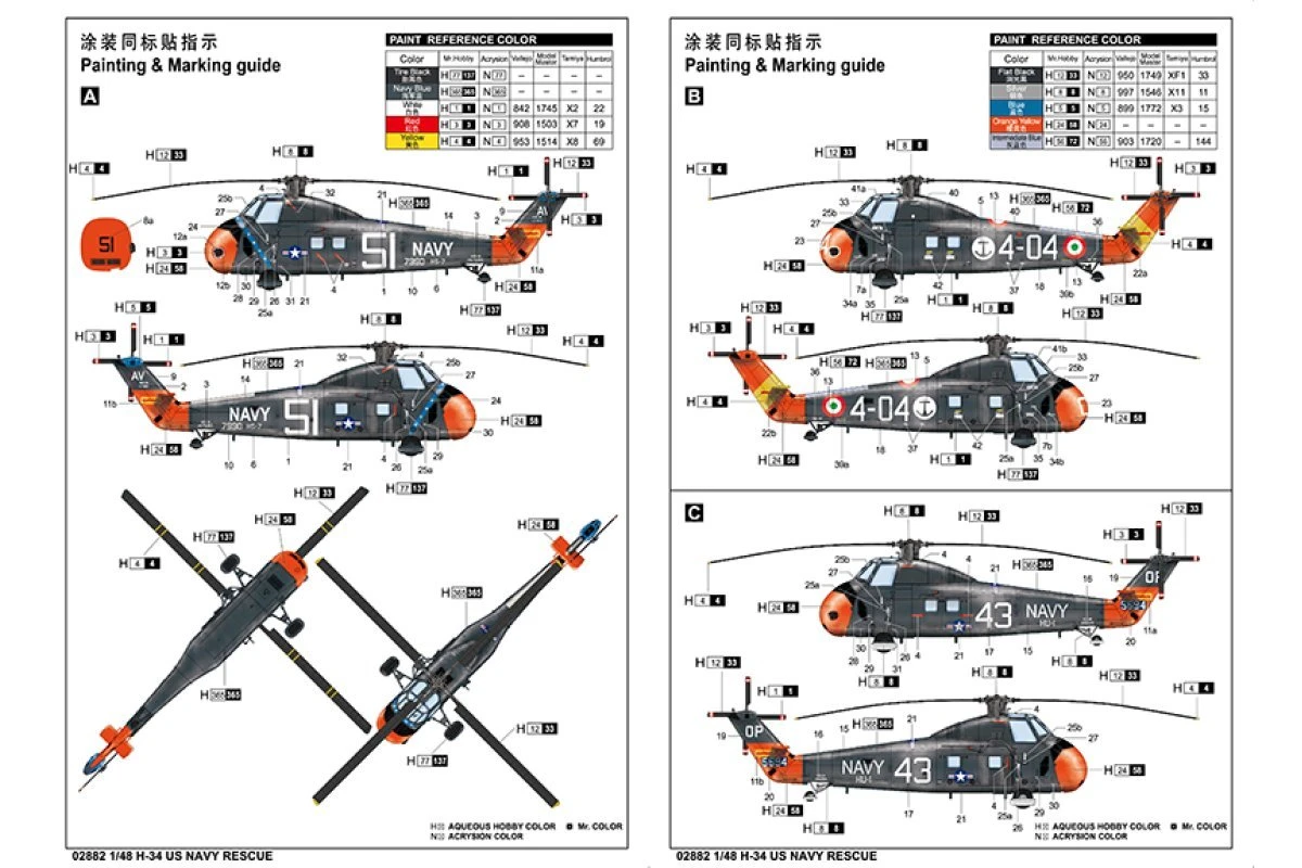 02882 | Trumpeter 1/48 H-34 Navy Rescue Helicopter Scaled Plastic Model Kit