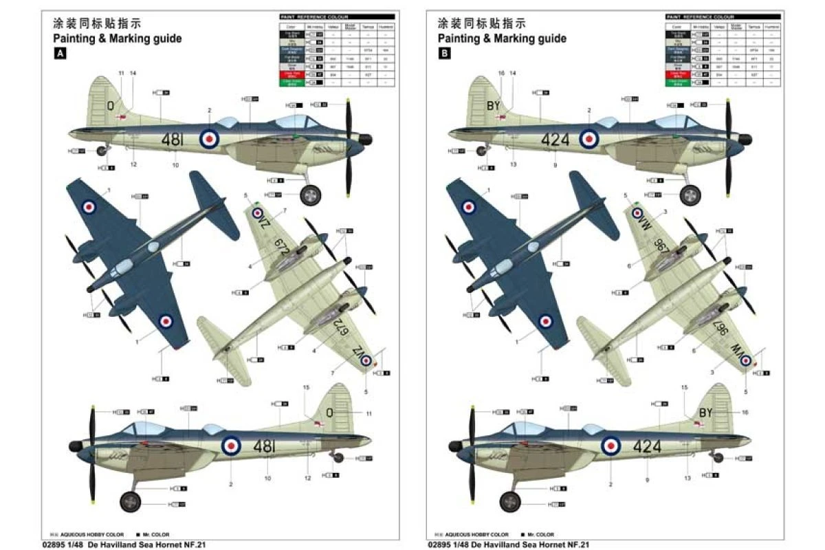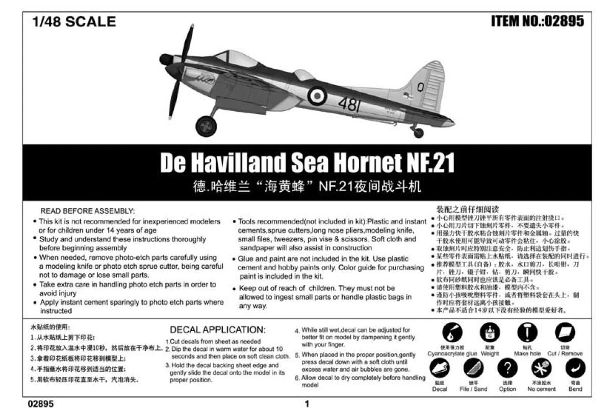 02895 | Trumpeter 1/48 De Havilland Sea Hornet NF.21 Fighter Scaled Plastic Model Kit