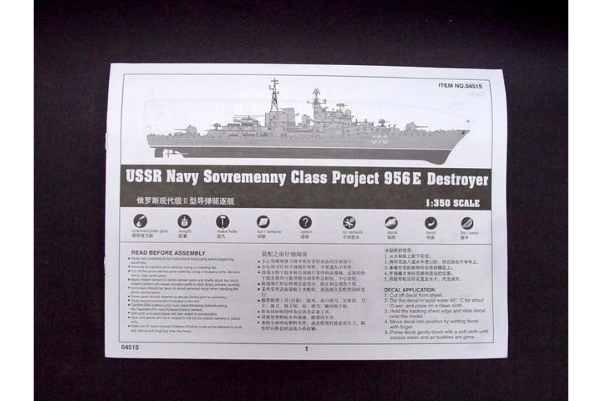 04515 | Trumpeter 1/350 USSR Sovremenny Class Project 956E Navy Destroyer Plastic Mod Kit