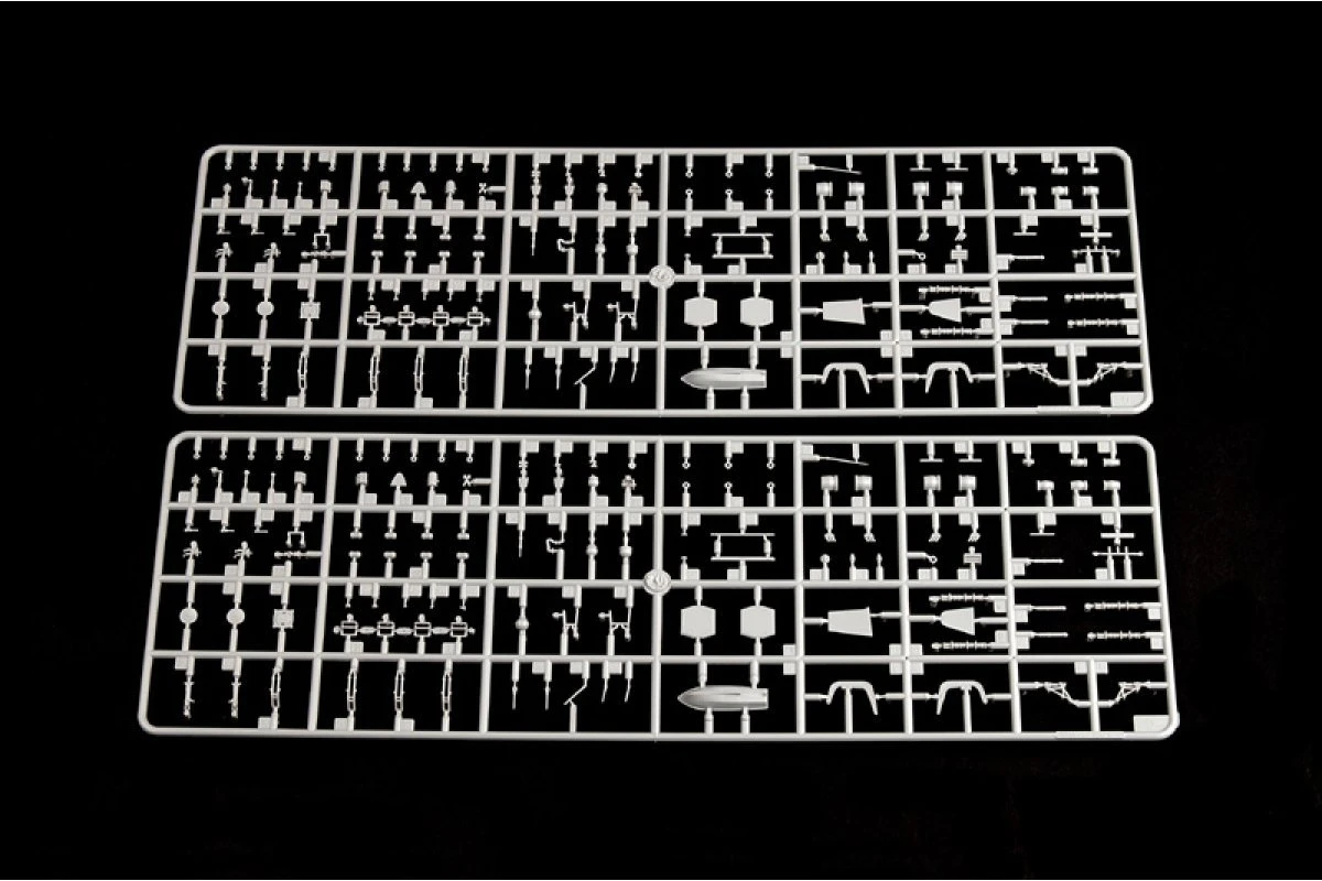 - Total Sprues: 10sprues , upper hull , lower hull ,waterline plate , deck , sh-60k and stand