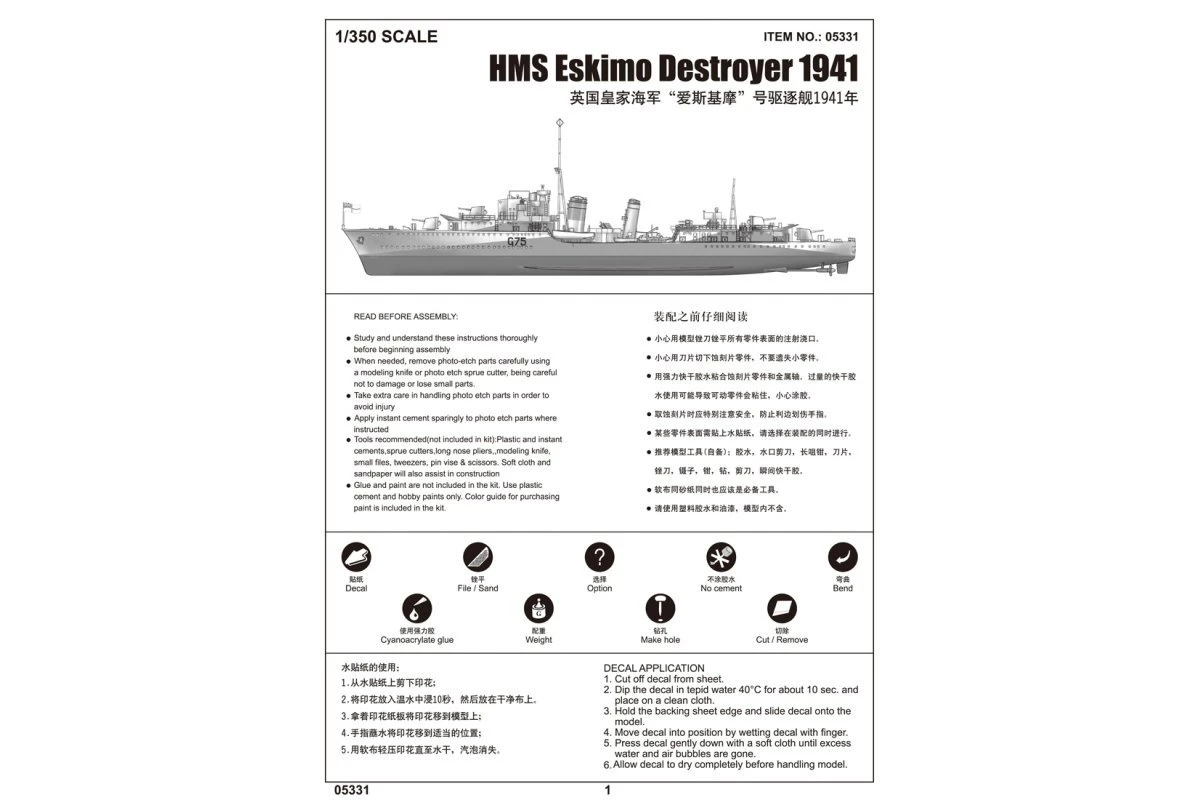 05331 | Trumpeter 1/350 HMS Eskimo 1941 Destroyer Plastic Model Kit W/ Australian Decals