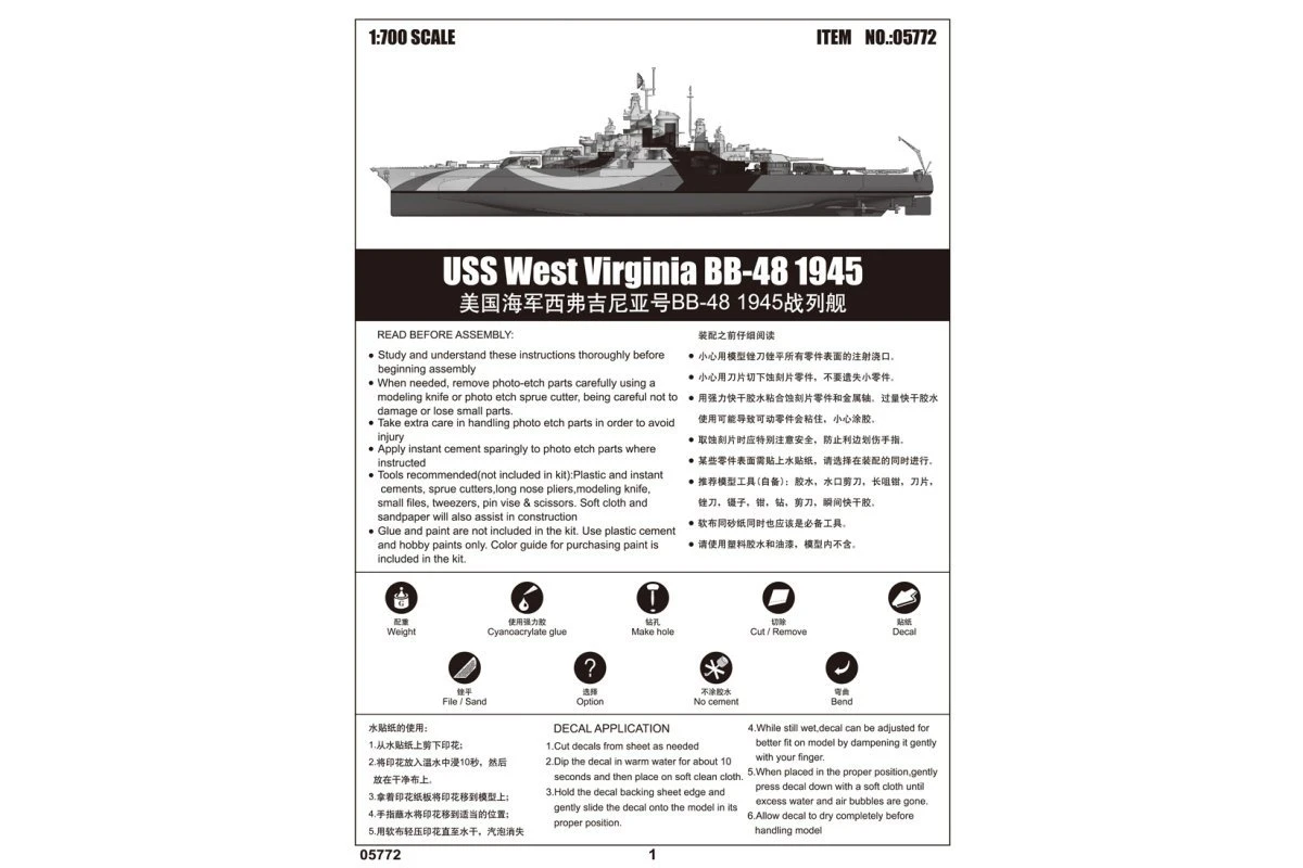 05772 | Trumpeter 1/700 USS West Virginia BB-48 1945 Battleship Plastic Model Kit