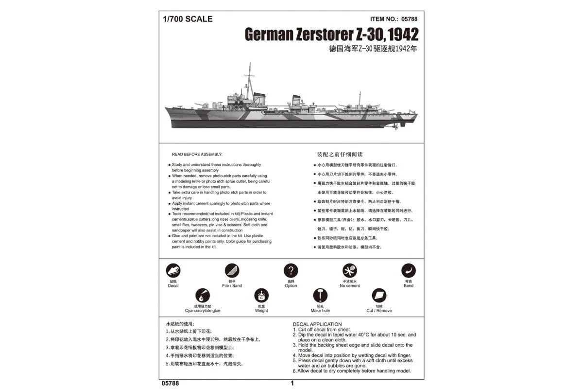 05788 | Trumpeter 1/700 German Zerstorer Z-30 1942 Destroyer Plastic Model Kit -Mini Crafters Store TRU 05788 55 1200x800 1