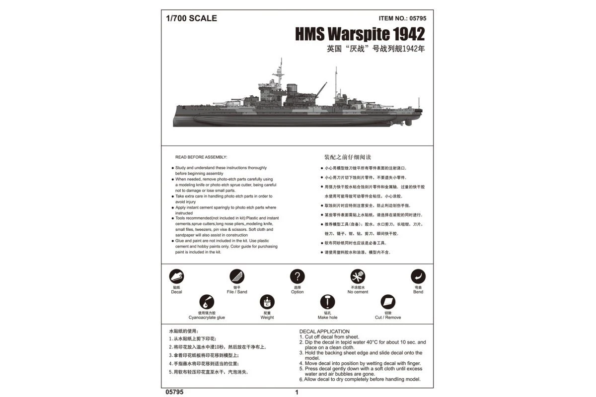 05795 | Trumpeter 1/700 HMS Warspite 1942 Battleship Plastic Model Kit