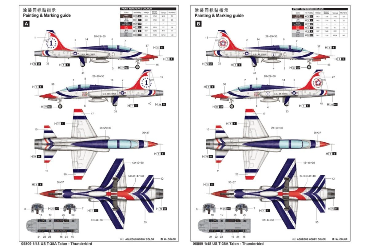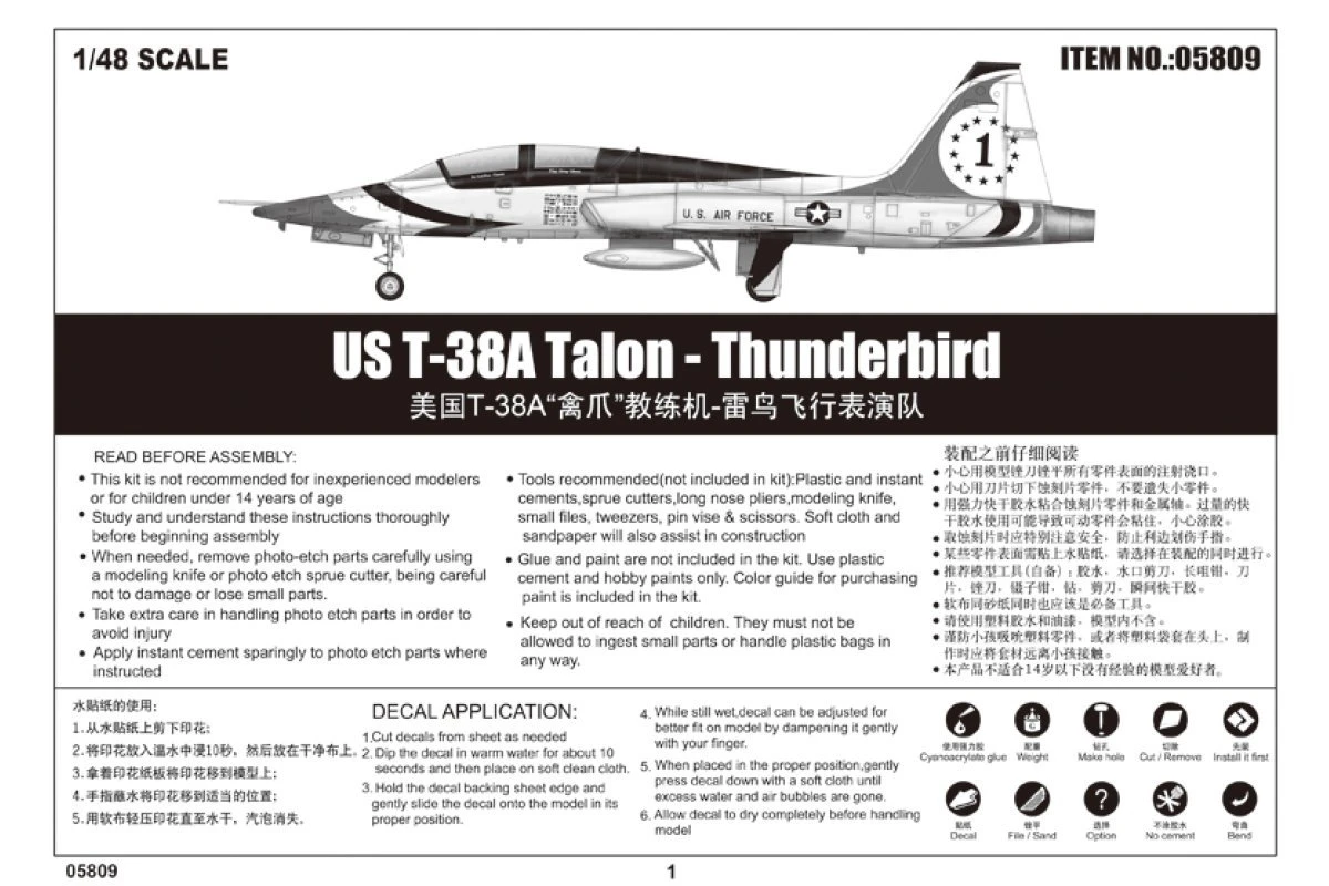 05809 | Trumpeter 1/48 US T-38A Talon Thunderbird Trainer Jet Scaled Plastic Model Kit