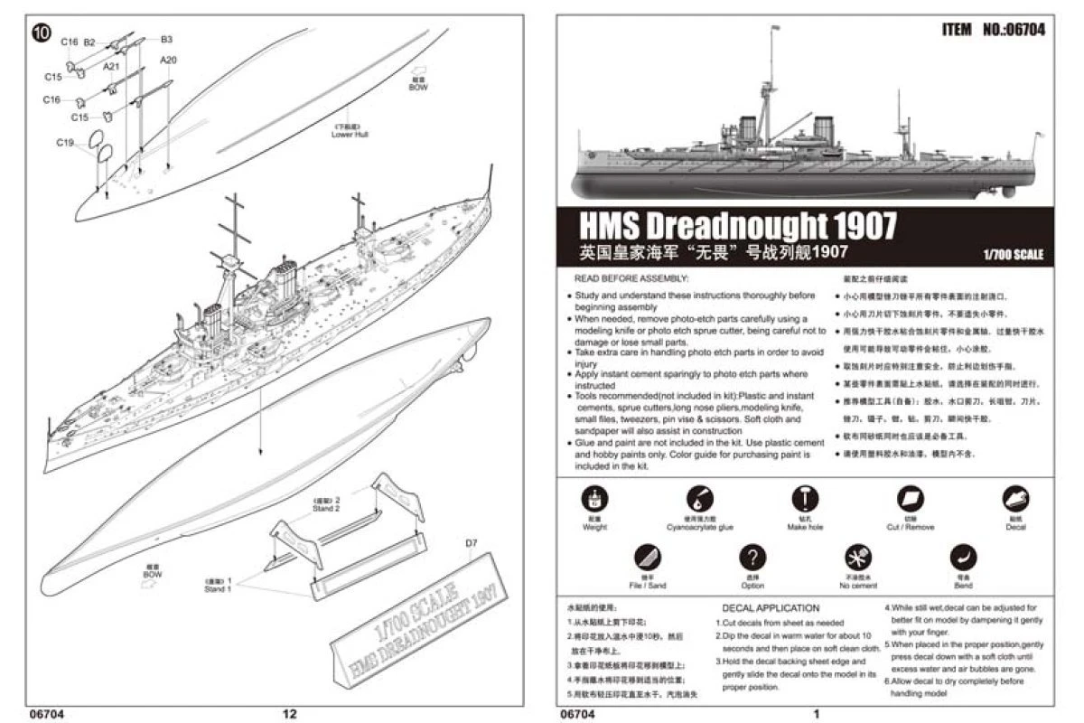 06704 | Trumpeter 1/700 HMS Dreadnought 1907 Battleship Plastic Model Kit