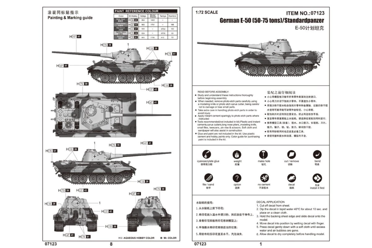 07123 | Trumpeter 1/72 German E-50 (50-75 Tons/Standardpanzer) Tank W/ 107mm Zis-6 Scaled Plastic Model Kit