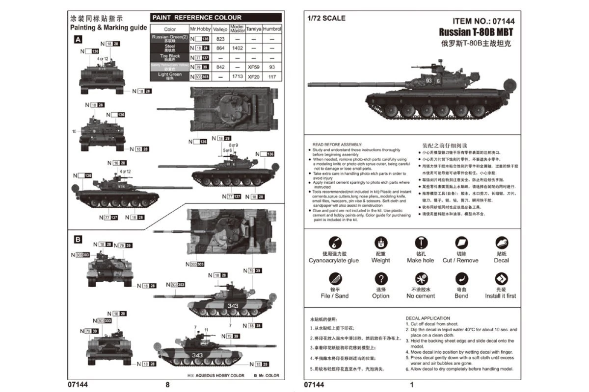 07144 | Trumpeter 1/72 Russian T-80B Main Battle Tank Scaled Plastic Model Kit