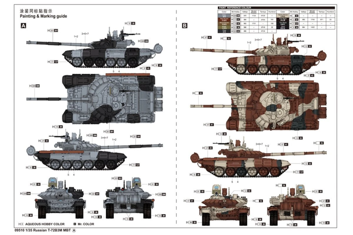 09510 | Trumpeter 1/35 Russian T-72B3M Main Battle Tank Scaled Plastic Model Kit