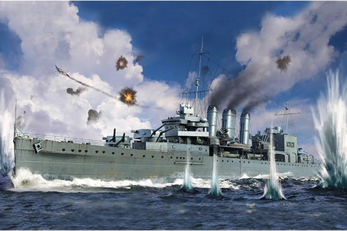 HMS Cornwall in 1928 in Davenport shipyard completed, accepted the modernizing period 1935-38 and subsequently remained in service until 1941 at the local fleet. 1941-42 served in the Royal Navy in the East to fight with the Japanese fleet. HMS Cornwall finally April 5, 1942 by the Japanese First Air Flotilla sank in waters southwest of Ceylon, Colombo.